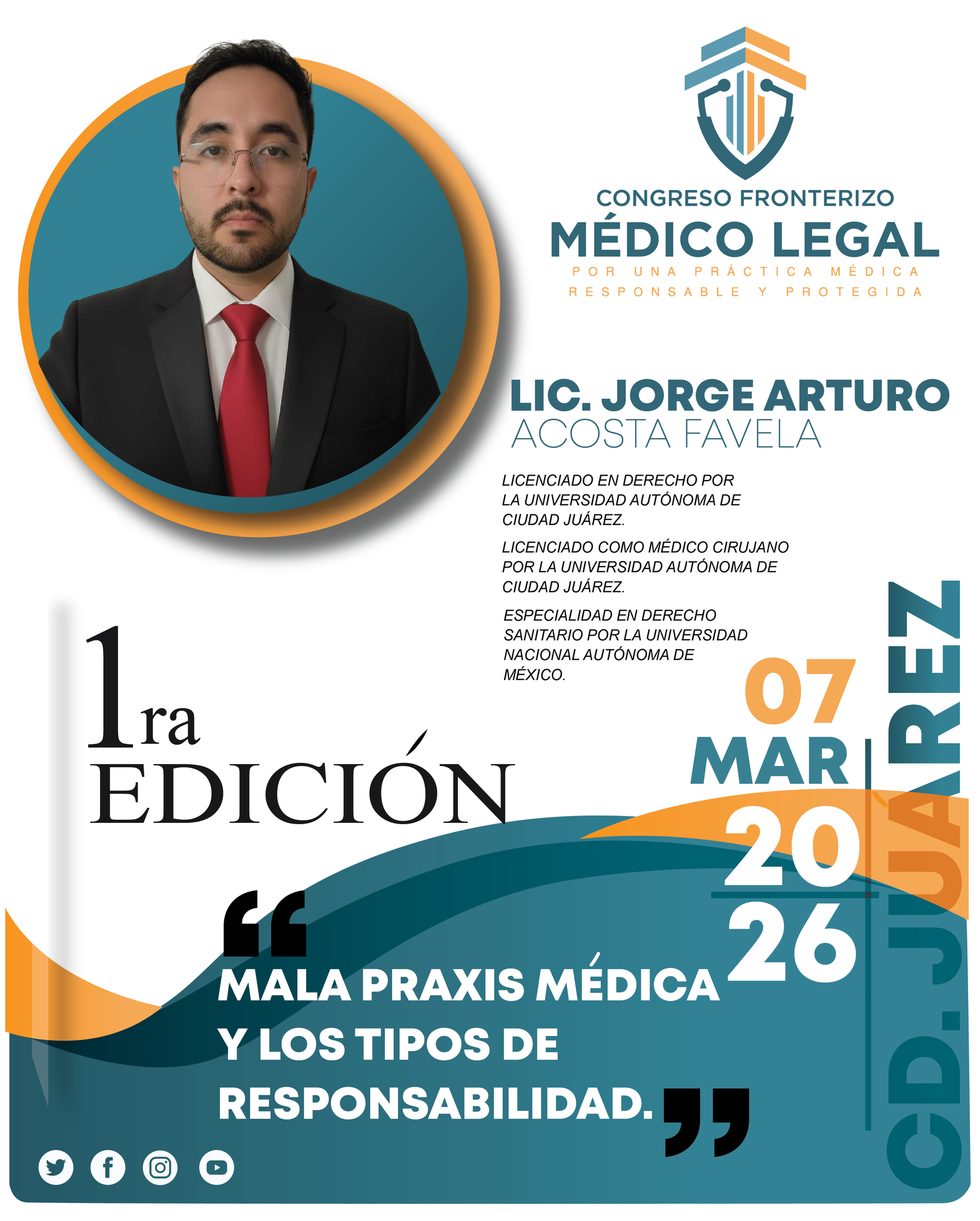El Congreso Fronterizo Médico Legal, en su primera edición surge ante la limitada información disponible para que el gremio médico y los propietarios de establecimientos de salud accedan a una asesoría legal especializada y personalizada, acorde a su área de práctica. Este encuentro busca brindarles las herramientas necesarias para garantizar seguridad jurídica integral, desde la prevención de riesgos hasta la atención de procesos legales y litigio.